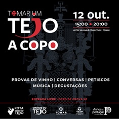 Tomar recebe dia 11 de outubro, sábado, no Hotel Vila Galé Collection Tomar, mais uma edição do Tomar Um Tejo a Copo, iniciativa da Comissão Vitivinícola Regional do Tejo, com apoio do Município de Tomar. O evento terá a participação de dezenas de produtores da região, provas comenta- das e momentos de música e petiscos.