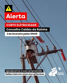 Município das Caldas da Rainha foi informado, pela E-redes, que será feita na manhã desta segunda-feira, uma intervenção no poste de muita alta tensão, obrigando a corte de eletrici- dade numa vasta área, afetando todo o conce- lho e arredores, por tempo indeterminado.